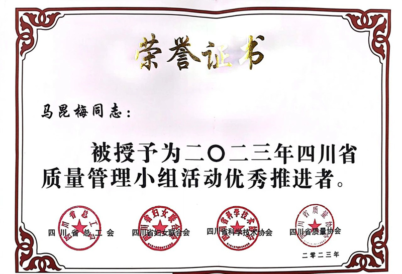 四川省质量管理小组运动优异推进者