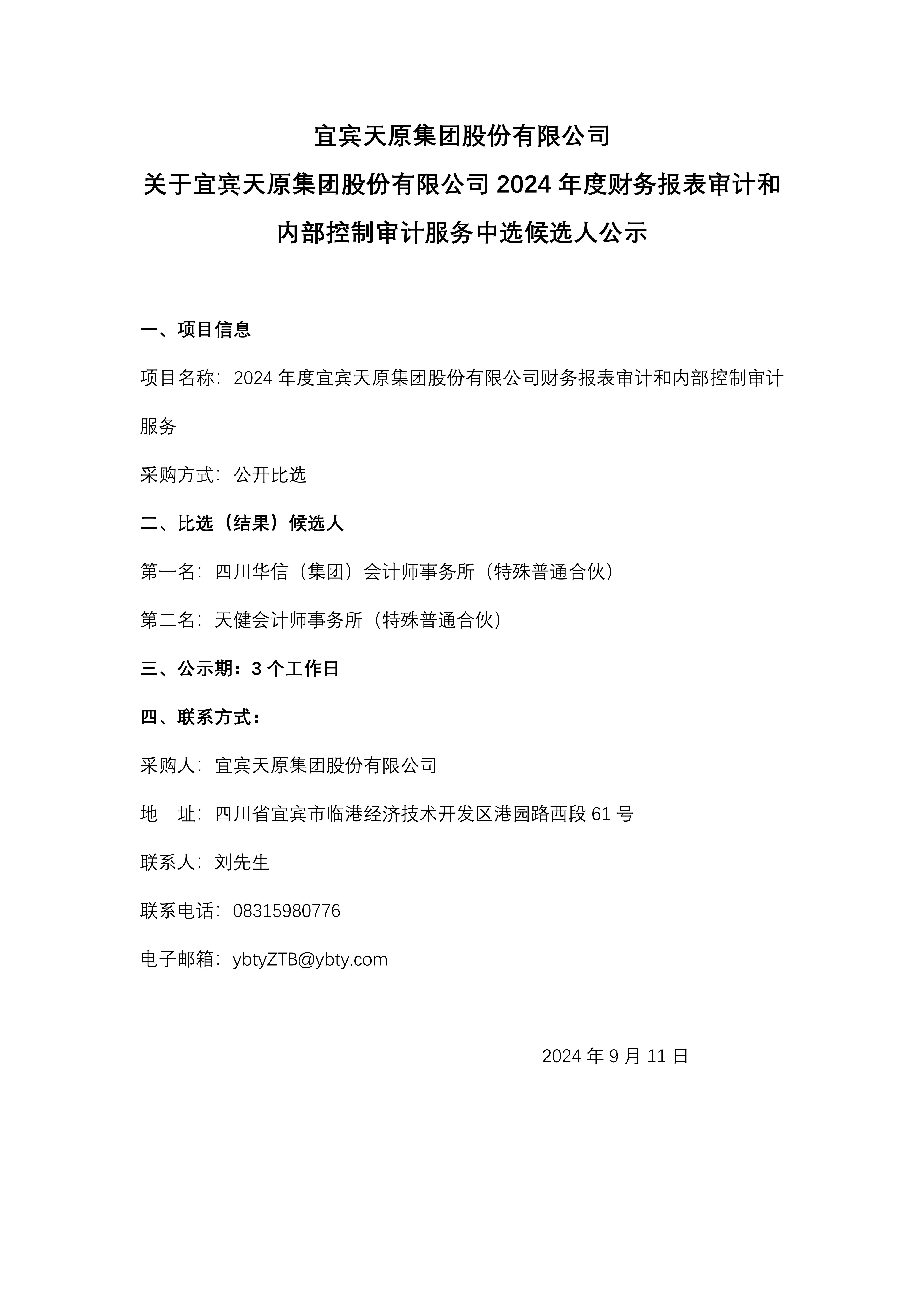 关于7790必发集团2024年度财务报表审计和内部控制审计服务中选候选人公示